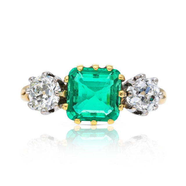 Sam's view: "I have never been so happy to find a ring. Everything about this ring is a dream - especially the central emerald, which is what drew me to it. It's so rare to find an emerald of this quality. It would be better suited to a wider finger given the width of the setting; the two diamonds and single glowing emerald make for one spectacular trio. Next to a yellow gold wedding band - perfection."