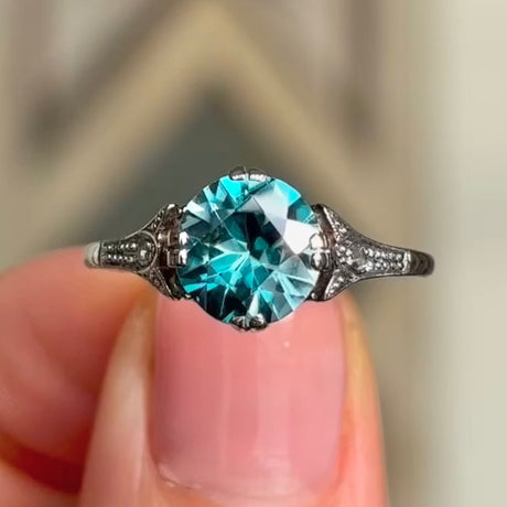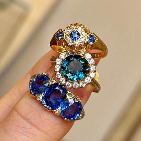 $1,725.00Unit price /UnavailableVintage, teal sapphire and diamond three-stone engagement ring