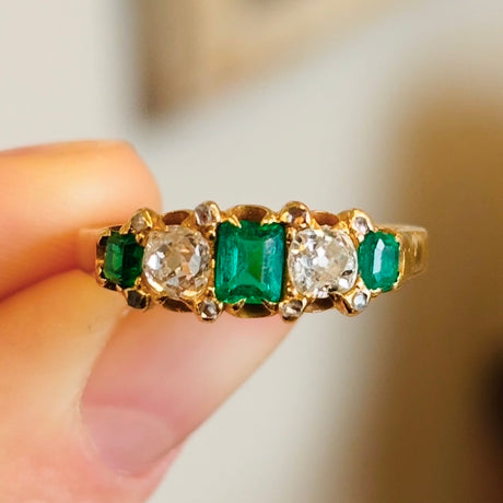 $1,311.00Unit price /UnavailableAntique, Belle Époque emerald & diamond three-stone ring