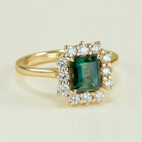 £1,850Unit price /UnavailableSquare-cut teal green-blue sapphire & diamond cluster ring