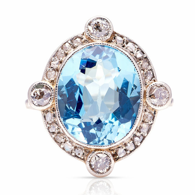 Antique, Belle Époque aquamarine & diamond cluster ring